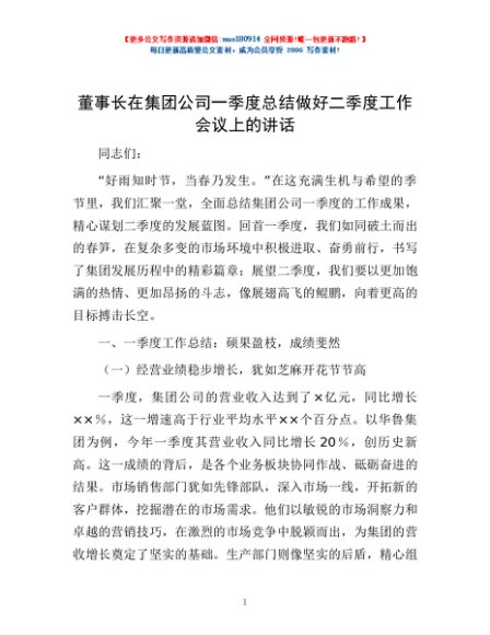 / 董事长在集团公司一季度总结做好二季度工作会议上的讲话