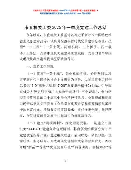 / 市直机关工委2025年一季度党建工作总结