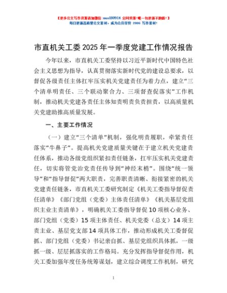 / 市直机关工委2025年一季度党建工作情况报告