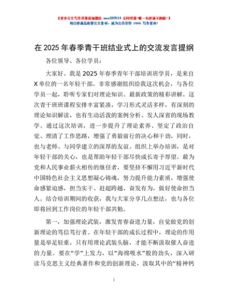 / 在2025年春季青干班结业式上的交流发言提纲