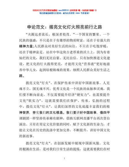 / 申论范文:拨亮文化灯火 照亮前行之路