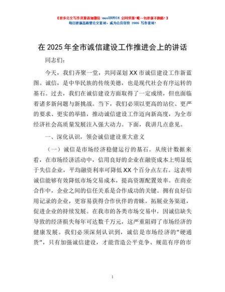 / 在2025年全市诚信建设工作推进会上的讲话