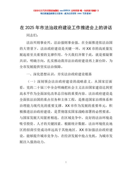/ 在2025年市法治政府建设工作推进会上的讲话