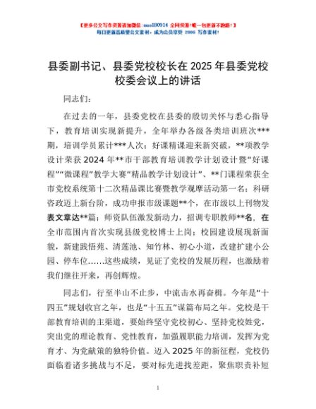 / 县委副书记、县委党校校长在2025年县委党校校委会议上的讲话