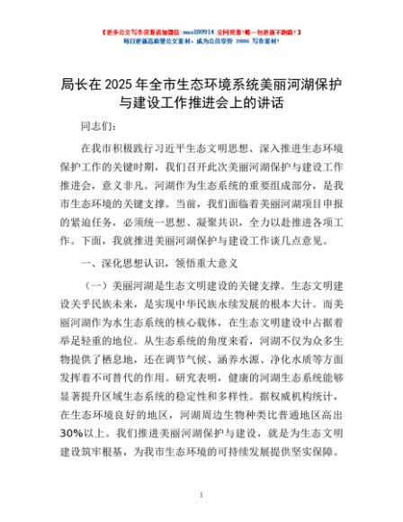 / 局长在2025年全市生态环境系统美丽河湖保护与建设工作推进会上的讲话