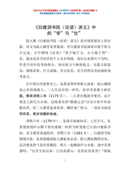 / 《白鹿洞书院〈论语〉讲义》中的“学”与“仕”