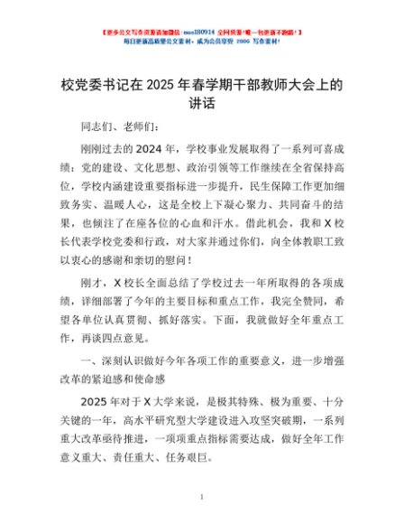 / 校党委书记在2025年春学期干部教师大会上的讲话