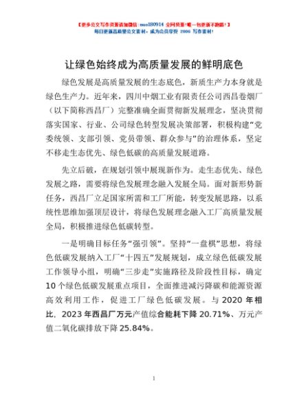 / 让绿色始终成为高质量发展的鲜明底色