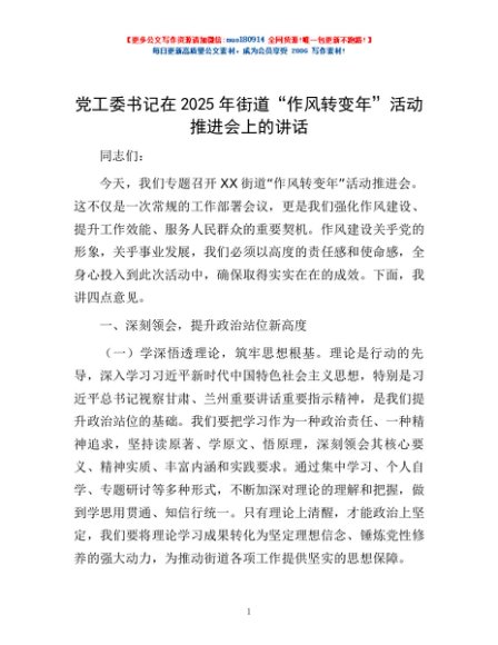 / 党工委书记在2025年街道“作风转变年”活动推进会上的讲话