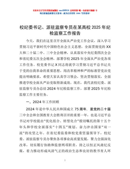 / 校纪委书记、派驻监察专员在某高校2025年纪检监察工作报告