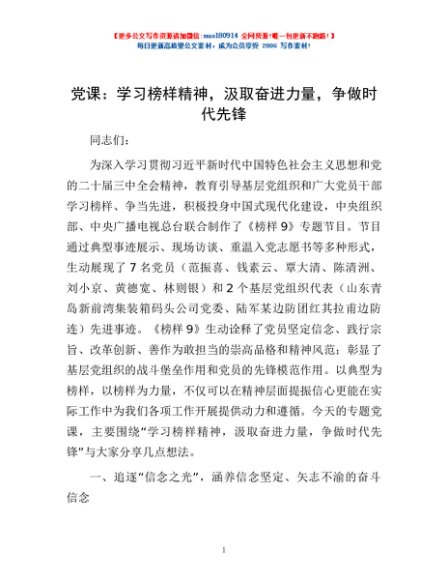 / 党课:学习榜样精神,汲取奋进力量,争做时代先锋