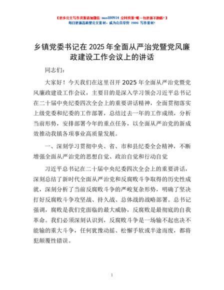 / 乡镇党委书记在2025年全面从严治党暨党风廉政建设工作会议上的讲话