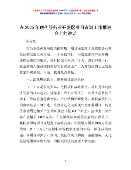 / 在2025年现代服务业开发区项目谋划工作推进会上的讲话