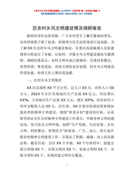 / 区农村乡风文明建设情况调研报告