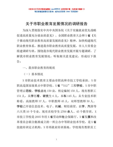 / 关于市职业教育发展情况的调研报告