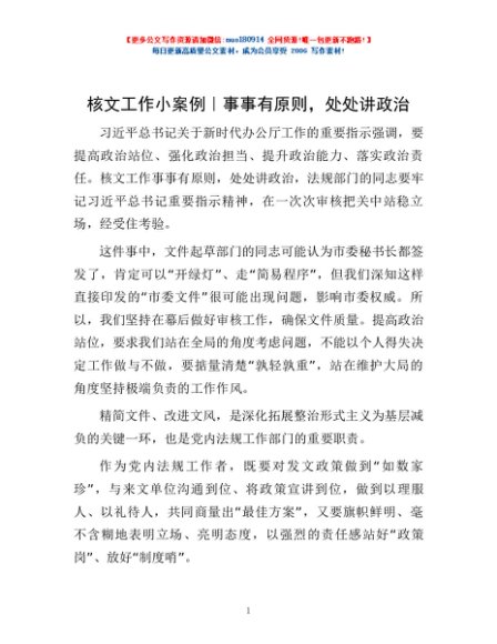 / 核文工作小案例|事事有原则,处处讲政治