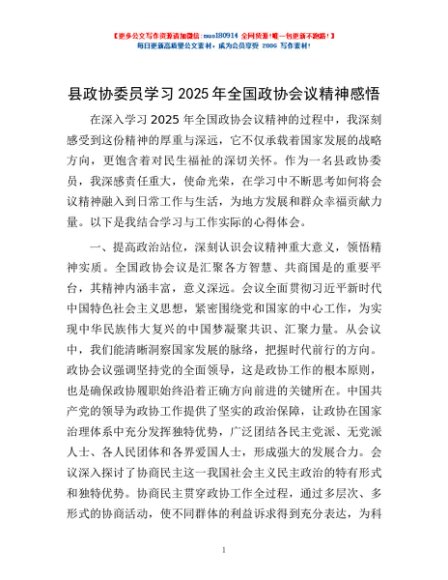 / 县政协委员学习2025年全国政协会议精神感悟