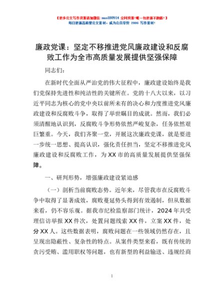 廉政党课:坚定不移推进党风廉政建设和反腐败工作 为全市高质量发展提供坚强保障