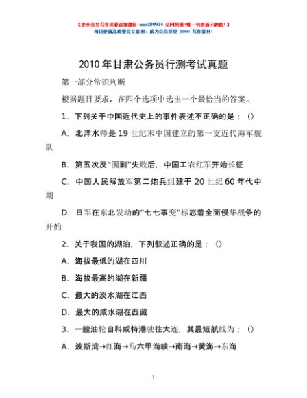 / 2010年甘肃公务员行测考试真题