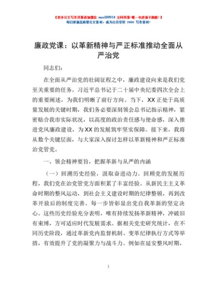 廉政党课:以革新精神与严正标准推动全面从严治党