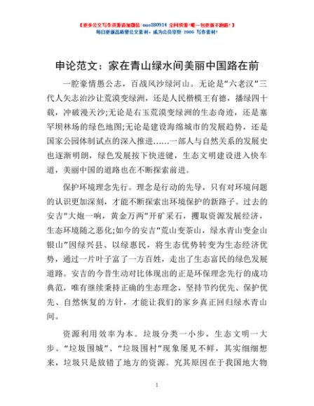 / 申论范文:家在青山绿水间 美丽中国路在前
