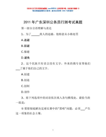 / 2011年广东深圳公务员行测考试真题