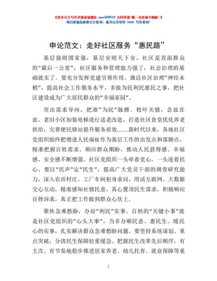 / 申论范文:走好社区服务“惠民路”