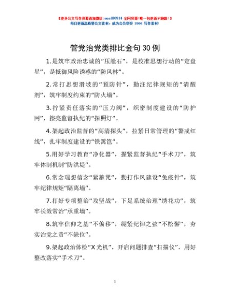 / 管党治党类排比金句30例