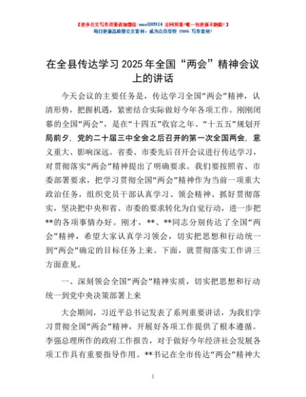 / 在全县传达学习2025年全国“两会”精神会议上的讲话