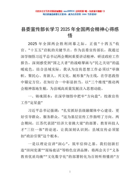 / 县委宣传部长学习2025年全国两会精神心得感悟
