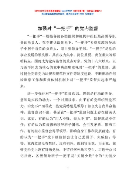 / 加强对“一把手”的党内监督
