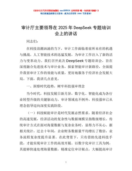 / 审计厅主要领导在2025年DeepSeek专题培训会上的讲话