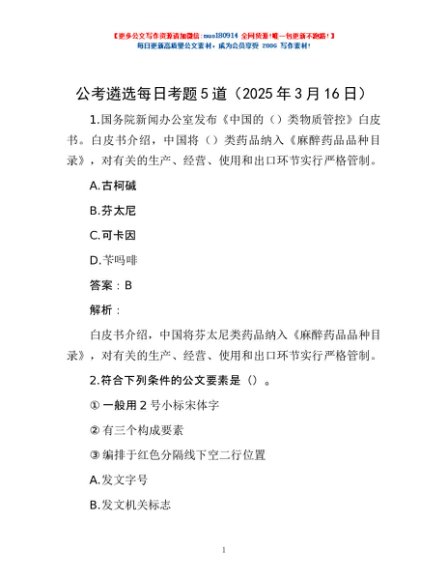 / 公考遴选每日考题5道(2025年3月16日)