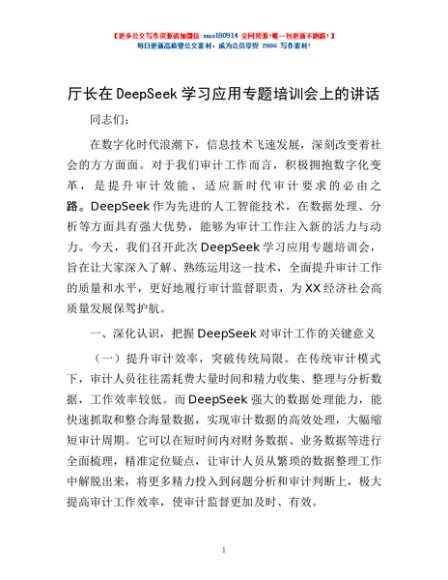 / 厅长在DeepSeek学习应用专题培训会上的讲话