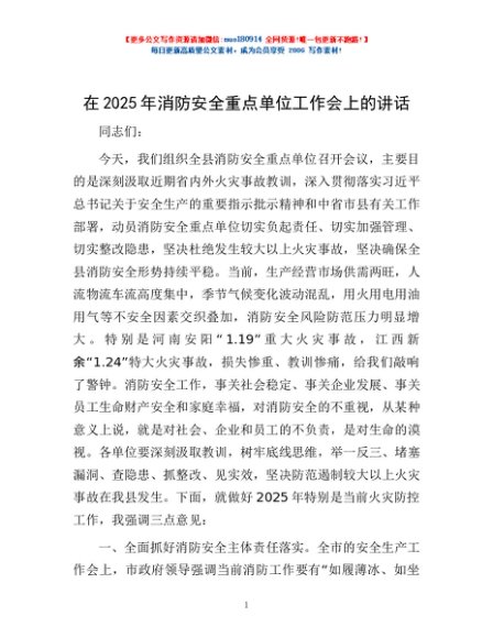 / 在2025年消防安全重点单位工作会上的讲话