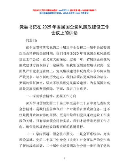/ 党委书记在2025年省属国企党风廉政建设工作会议上的讲话