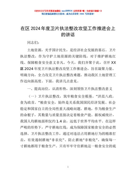 / 在区2024年度卫片执法整改攻坚工作推进会上的讲话