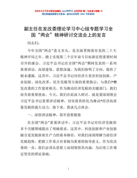 / 副主任在发改委理论学习中心组专题学习全国“两会”精神研讨交流会上的发言