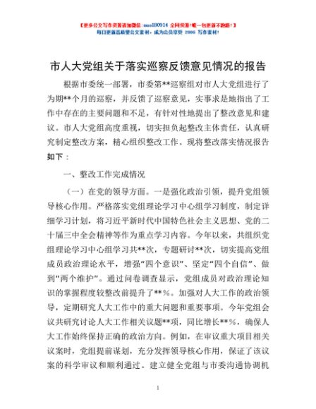 / 市人大党组关于落实巡察反馈意见情况的报告