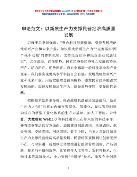 / 申论范文:以新质生产力支撑民营经济高质量发展