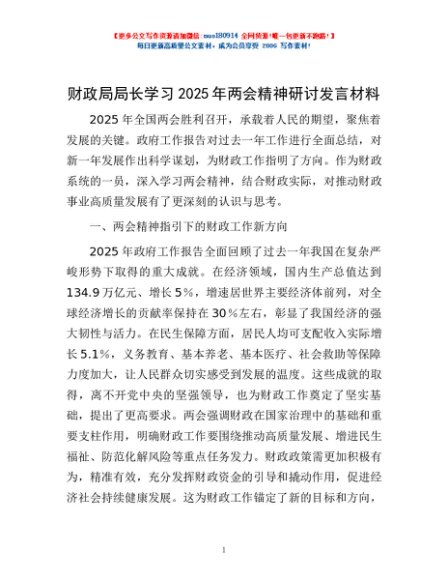 / 财政局局长学习2025年两会精神研讨发言材料
