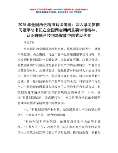 / 2025年全国两会精神解读讲稿:深入学习贯彻习近平总书记在全国两会期间重要讲话精神,认识理解科技创新赋能中国式现代化