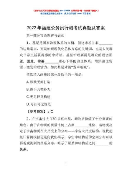 / 2022年福建公务员行测考试真题及答案