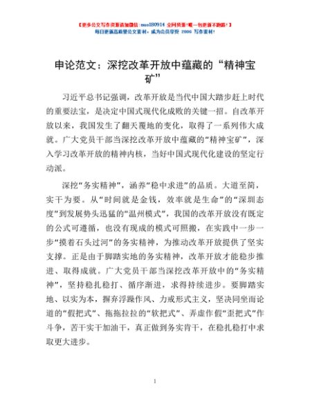 / 申论范文:深挖改革开放中蕴藏的“精神宝矿”