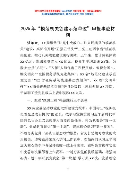 / 2025年“模范机关创建示范单位”申报事迹材料