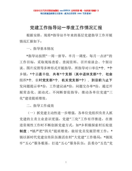 / 党建工作指导站一季度工作情况汇报