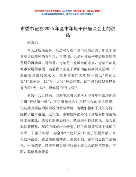/ 市委书记在2025年全市年轻干部座谈会上的讲话