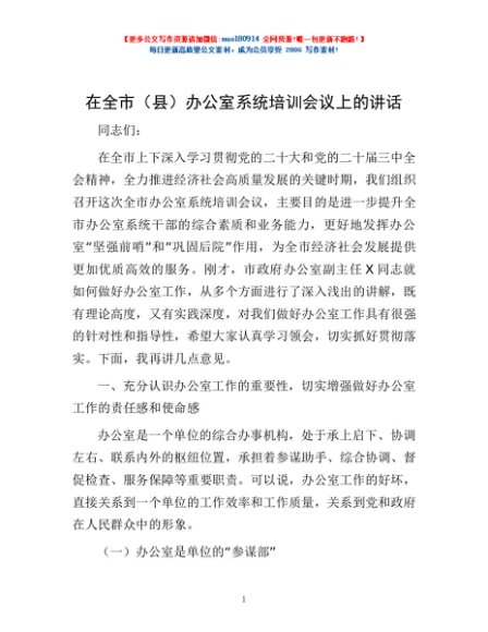 / 在全市(县)办公室系统培训会议上的讲话