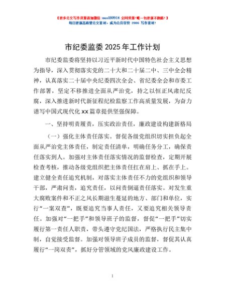 / 市纪委监委2025年工作计划