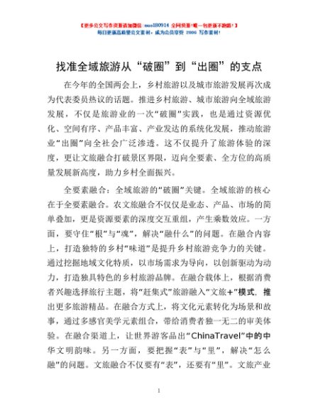 / 找准全域旅游从“破圈”到“出圈”的支点